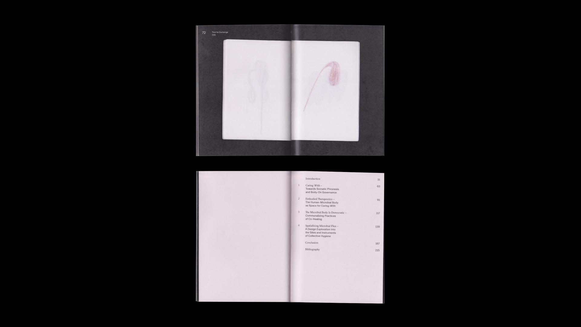 building off a feminist ethics of care, evolutionary biologist lynn margulis’s theory of human-microbial symbiogenesis, and cross-cultural perspectives on hygiene and grooming practices, this thesis seeks to give shape to a form of caring with structured around body-on governance, somatic phronesis and a collective practice of microbial grooming. the author believes that enacting these matters of caring with plays a critical role in breaking down the restrictive and ubiquitous colonial ideals of scientific knowledge production, which restricts the co-production of knowledge systems of health among patients and clinicians. by designing an alternative social experience of health in which people co-heal with each other’s microbial matter, this thesis shapes a spatialized narrative in which caring with is not only a concept but a foundational tool for our becoming together in better health.